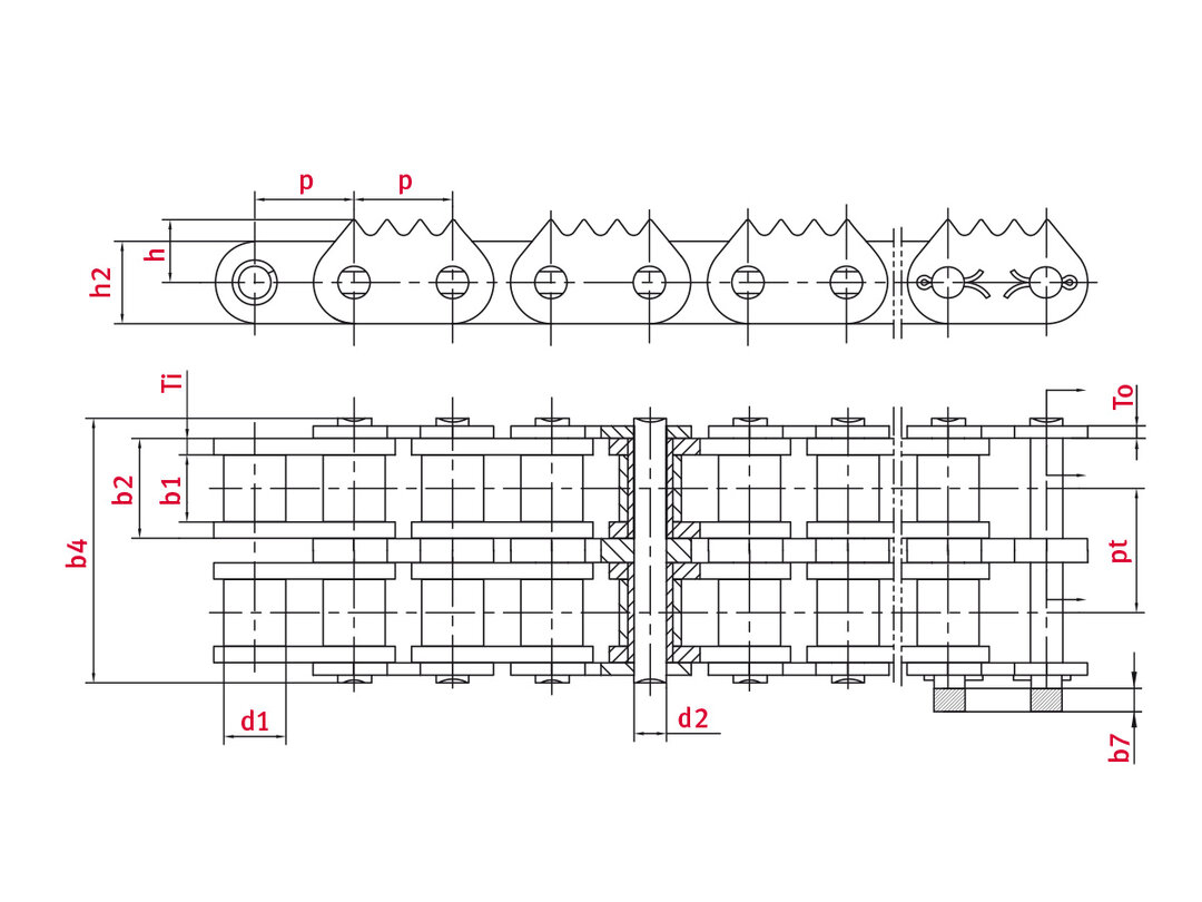 - Alle Ketten basieren auf den Mindest-Anforderungen nach DIN ISO 606 (DIN 8187/DIN 8188)